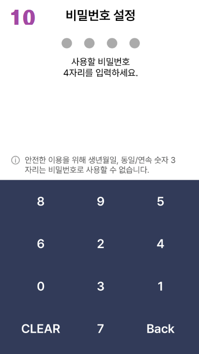 7. 비밀번호 설정에서 번호 4자리를 설정합니다.