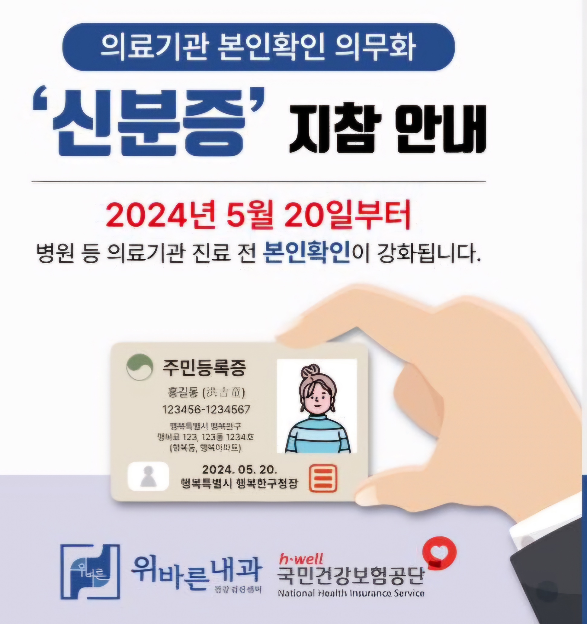 2024년 5월 20일부터 의료기관 본인확인 의무화 제도가 시행중입니다.