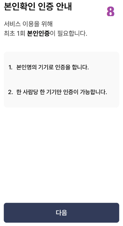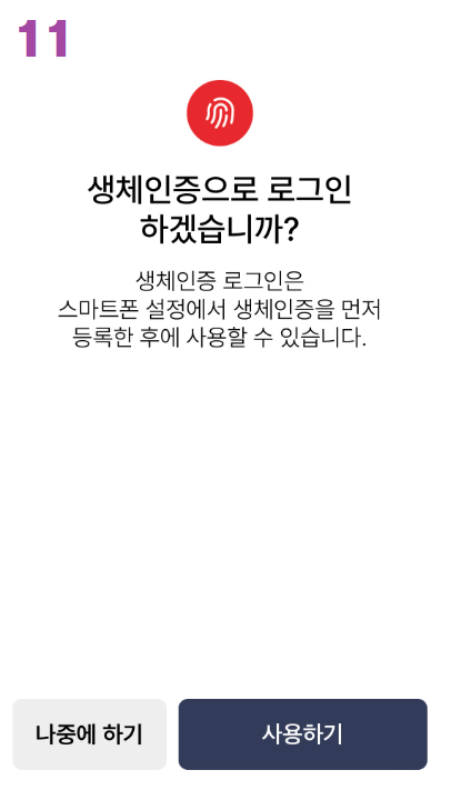 8. 생체인증은 선택적입니다.