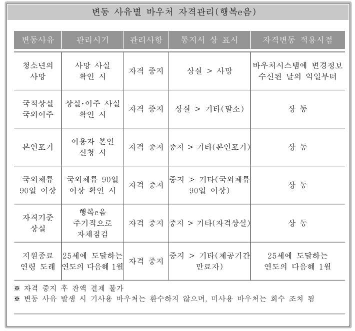 변동 사유별 바우처 관리