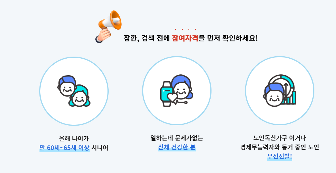 연령: 만 60세~65세 이상의 신체 건강한 어르신